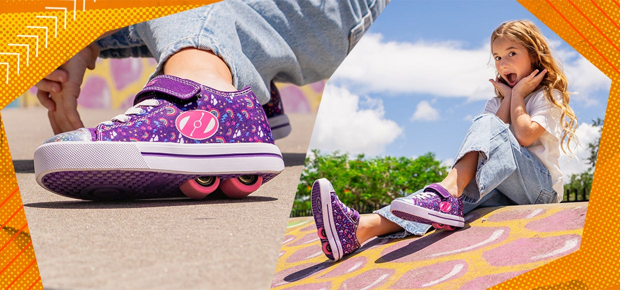 Heelys are the original two-in-one wheely shoe! With removable wheels, you can roll or walk, the choice is yours. We have an amazing range of single wheel and two wheel roller shoes in hot new colours and styles to suit everyone! Whichever you choose, these shoes with wheels are super fun, easy to ride and great for co-ordination and balance. So put some wheels in your soul and get Heelying!